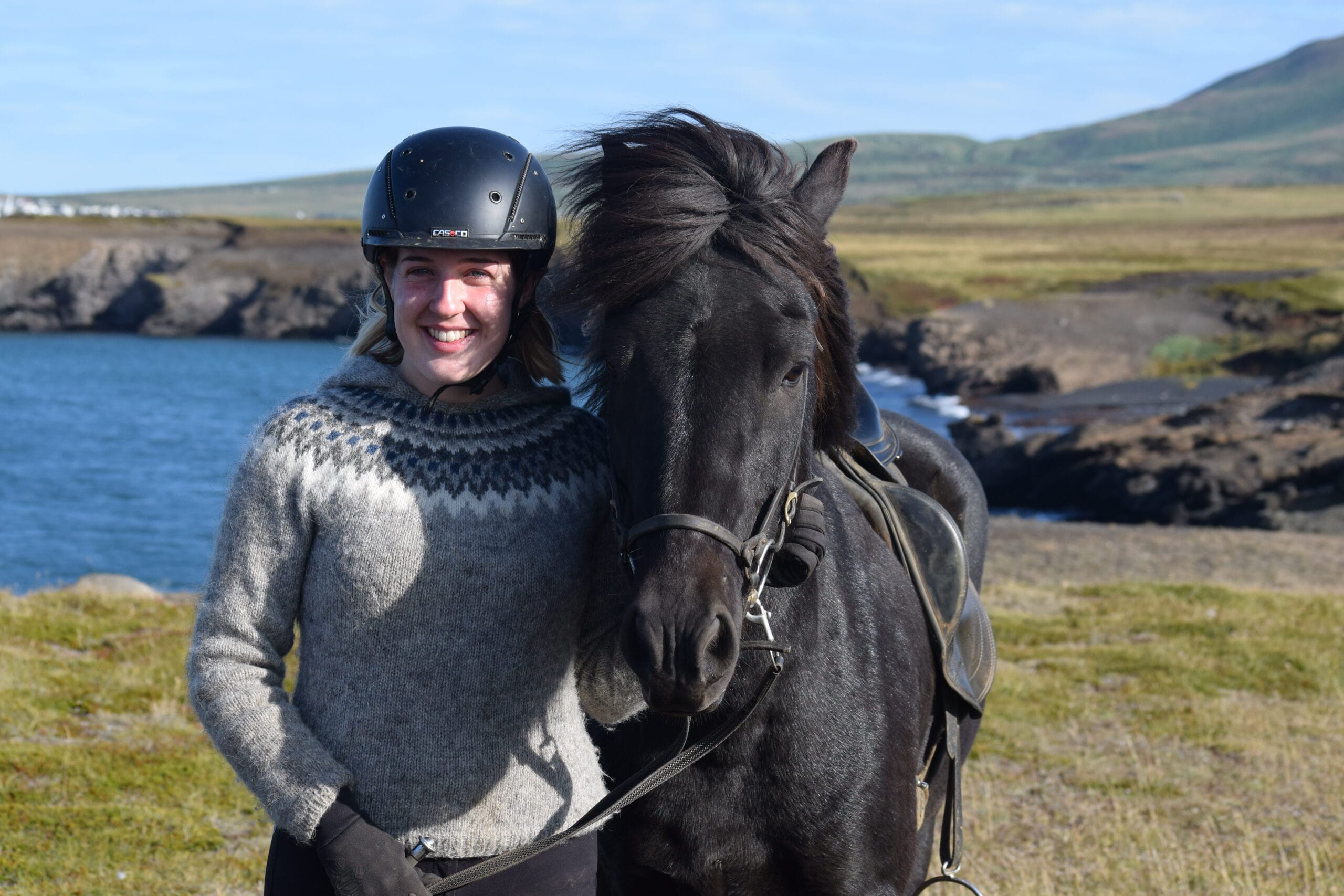 We have noticed that among our guests the typical Icelandic wool sweaters are almost as popular as the Icelandic horses themselves. Many just like to buy one, but wearing a sweater custom made for you, or custom made by yourself is of course even better! Our good friend Jutta, who has been knitting already so many sweaters for the Saltvík “family” will be joining this tour and is ready to help everyone with their questions about knitting an Icelandic sweater.